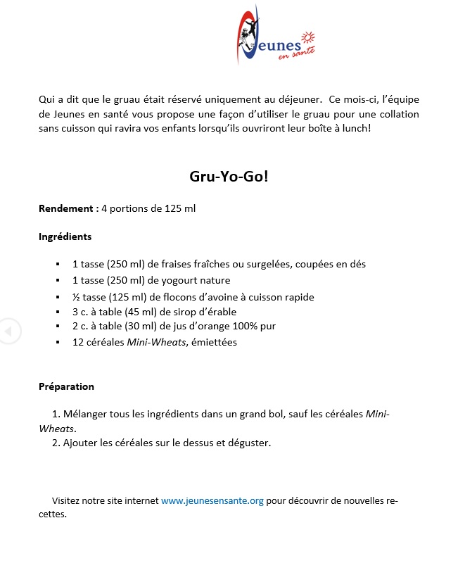Recettes jeunes en santé
