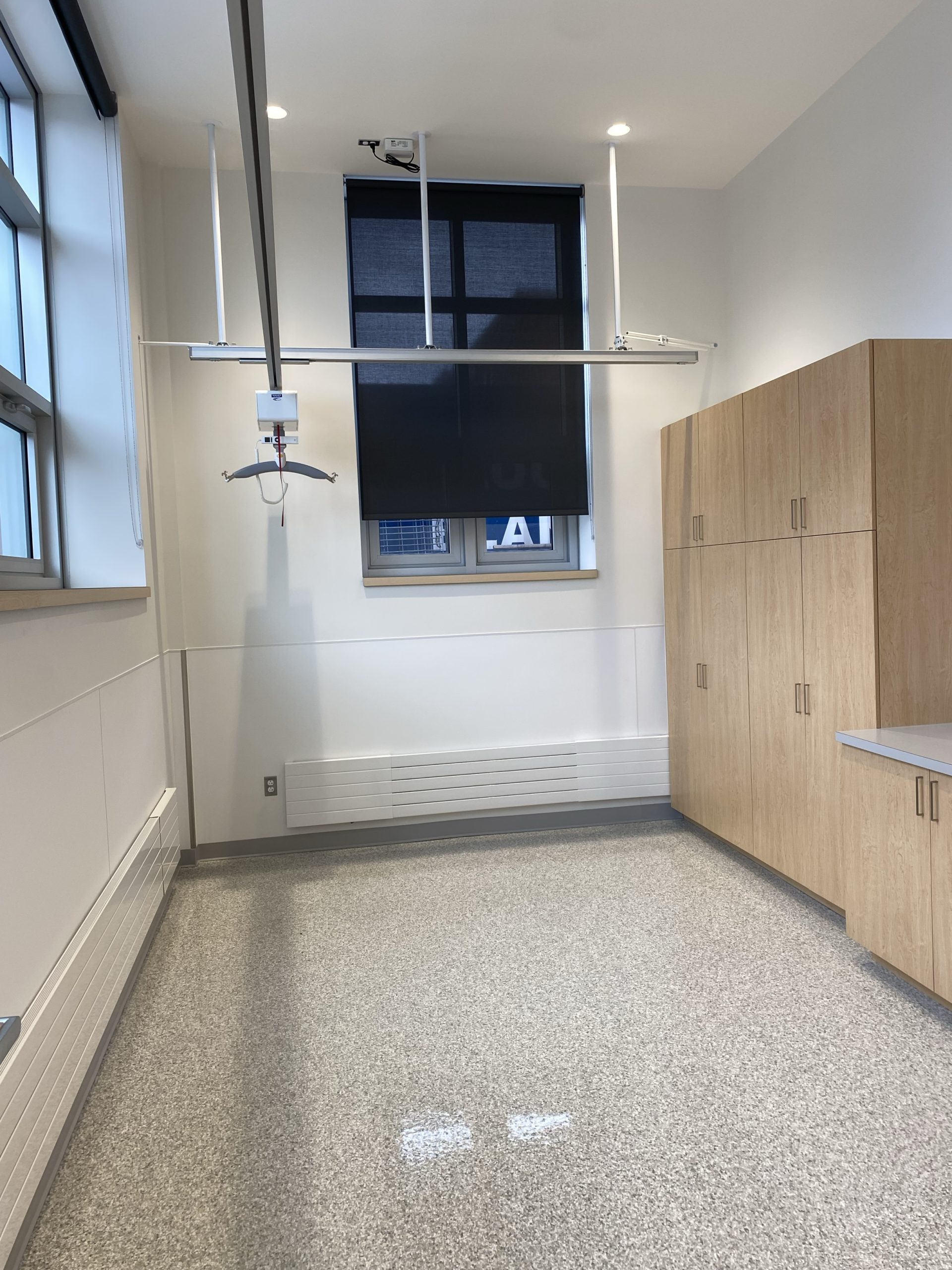 - Réaménagement complet de la piscine intérieure et des vestiaires, permettant des séances de physiothérapie et d’ergothérapie.